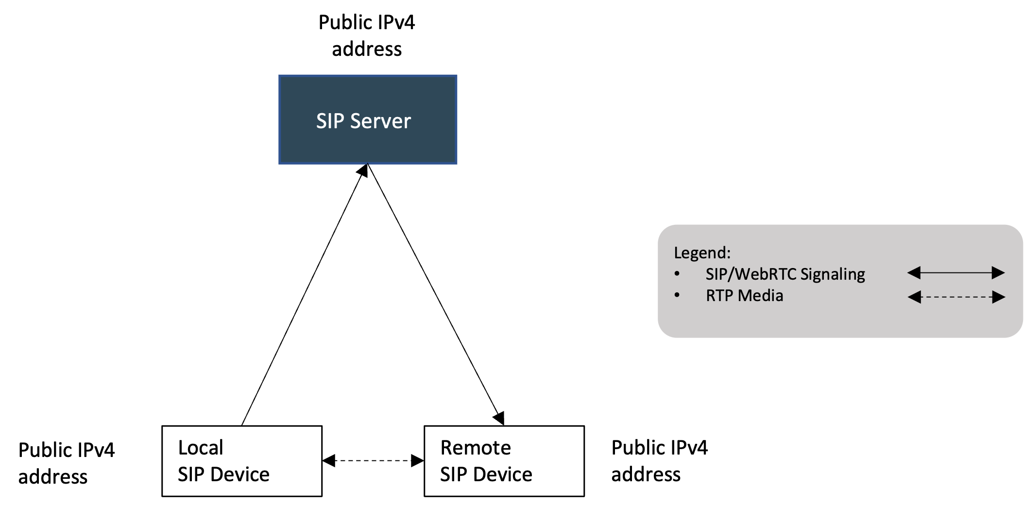Below image shows the signaling and media flow of end-to-end communication in a scenario where both endpoints have public IPv4 addresses, hence NAT is not needed.